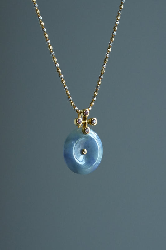 #0475 "Bi" Icy Monet Lavender & Green Jadeite Jade 18K Yellow Gold Pendant