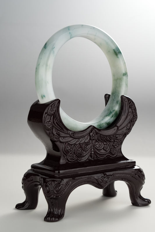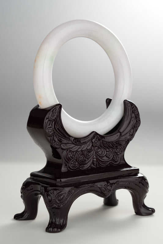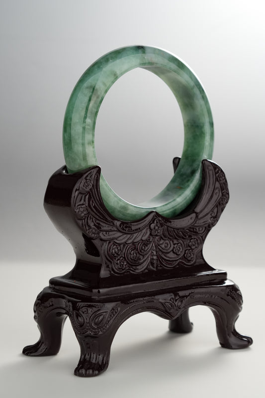 #0286 Icy Green Flower Jade Bangle Size 57.5