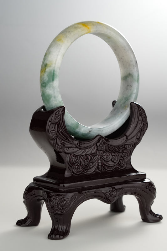 #0299 White Light Grey Yellow Jade Bangle Size 60.5