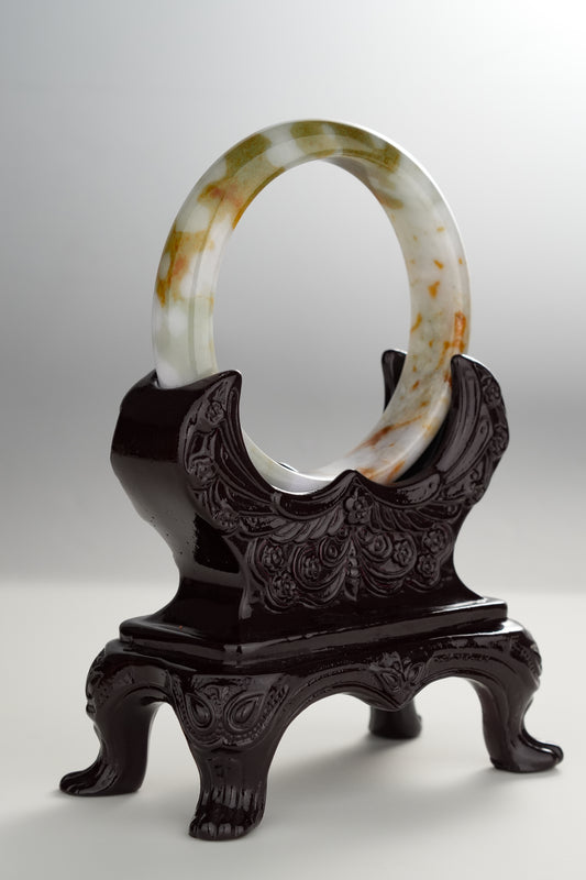 #0295 Light Green Red Flower Jade Bangle Size 59.2
