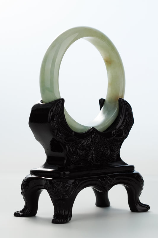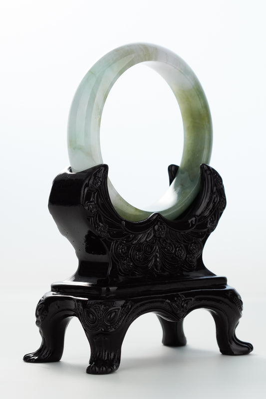 #0168 Icy Olive Green White Jadeite Jade Bangle Size 57.1