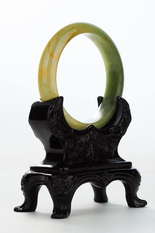 #0162 Icy Olive Green Yellow Jadeite Jade Bangle Size 58.6