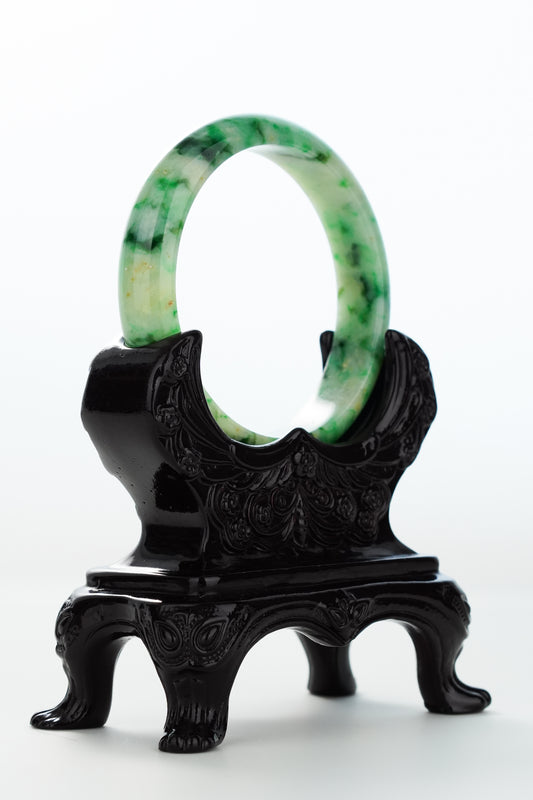 #0172 Rich Green Yellow Jadeite Jade Bangle Size 56