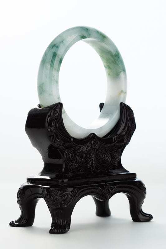 #0161 Icy Green Red Jadeite Jade Bangle Size 57