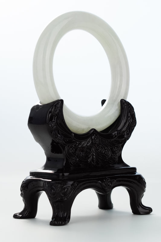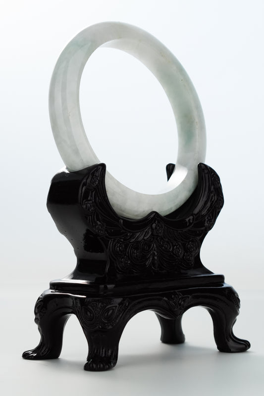 #0144 Icy Light Green White Jadeite Jade Bangle Size 55.7 (fits up to 57)