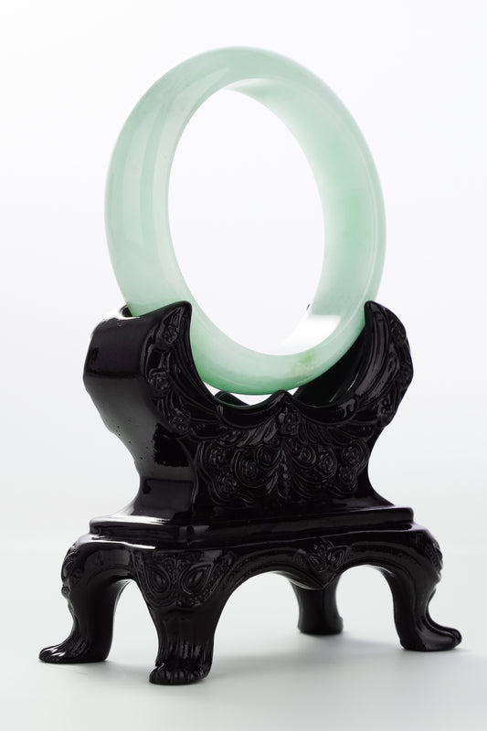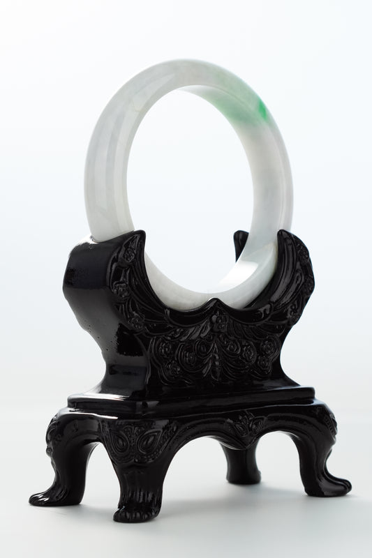 #0149 Icy Lotus Green Jadeite Jade Bangle Size 58.2