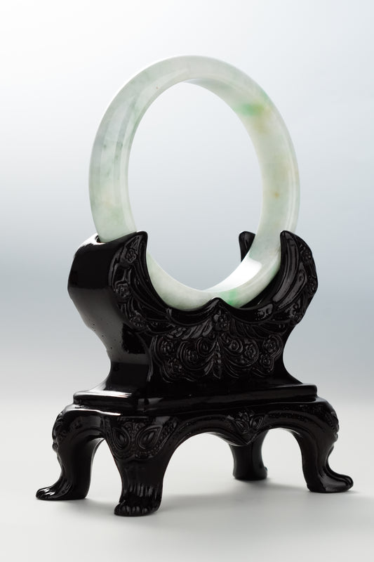#0102 Light Green White Jadeite Jade Bangle Size 56.8