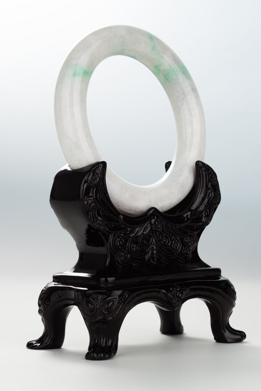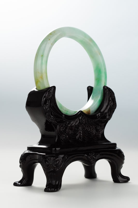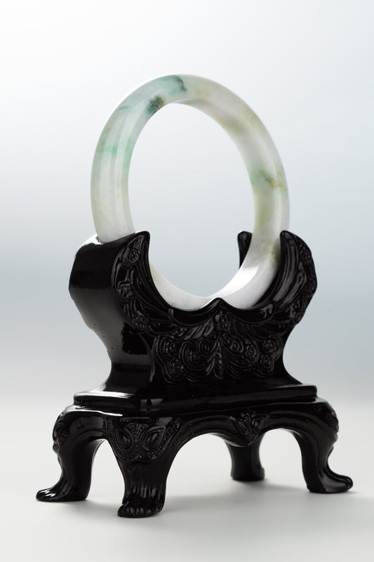 #0096 Icy Green Red Ink White Jadeite Jade Bangle Size 55