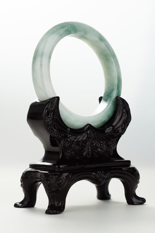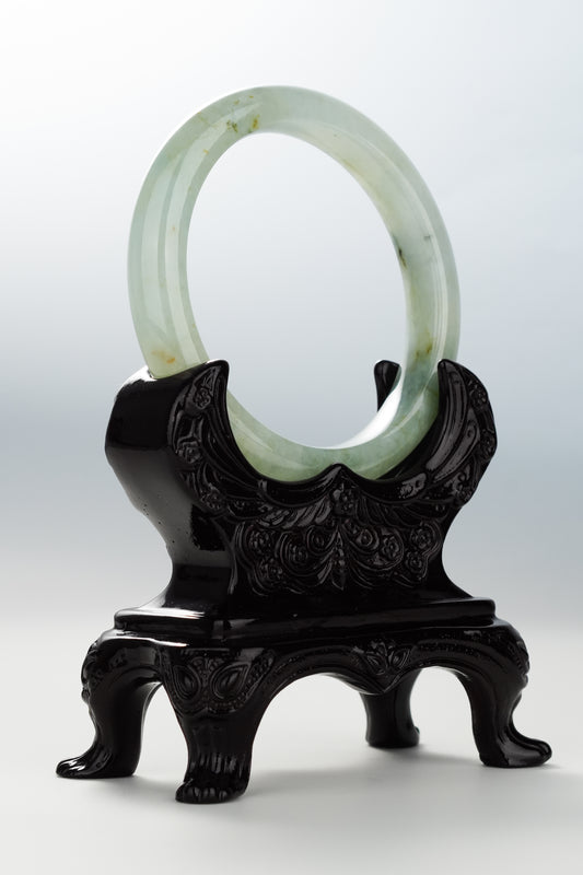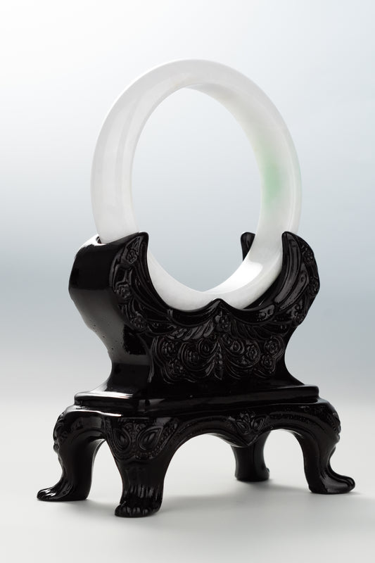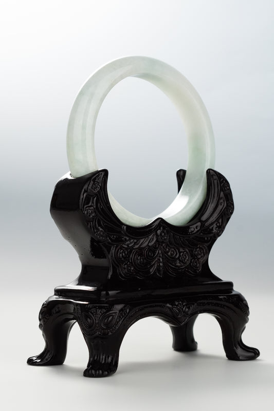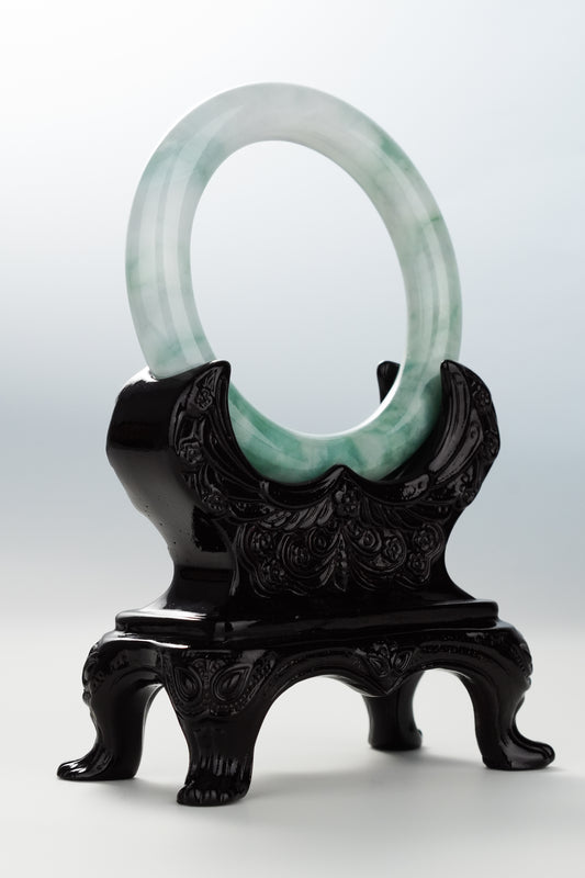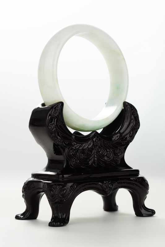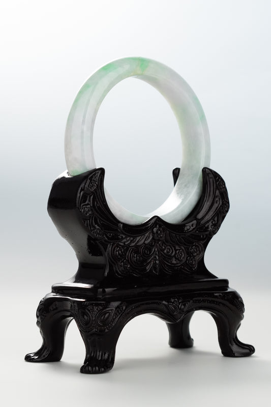 #0086 Icy White Light Green Jadeite Jade Bangle Size 55.8