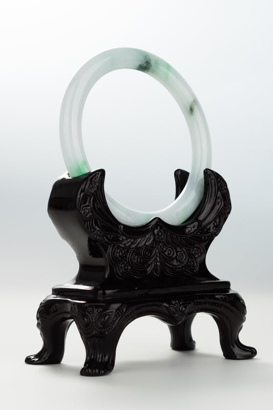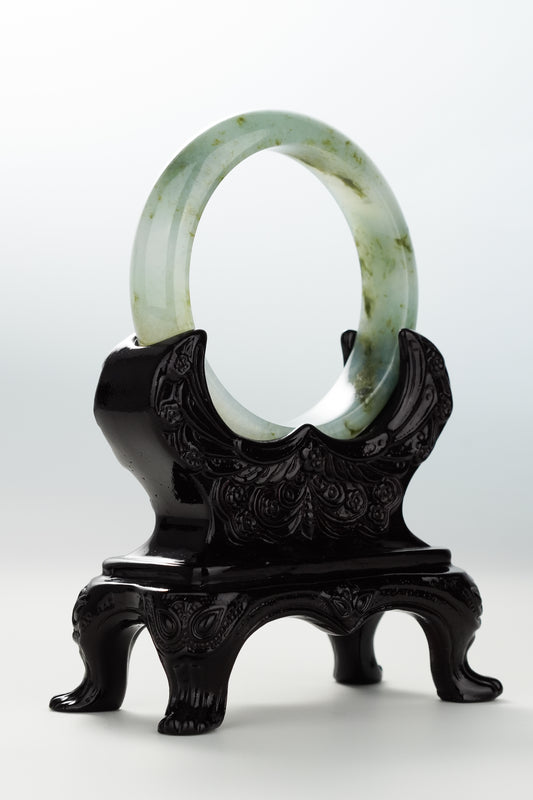 #0091 Icy Green Ink Yellow Flower Jadeite Jade Bangle Size 59.1