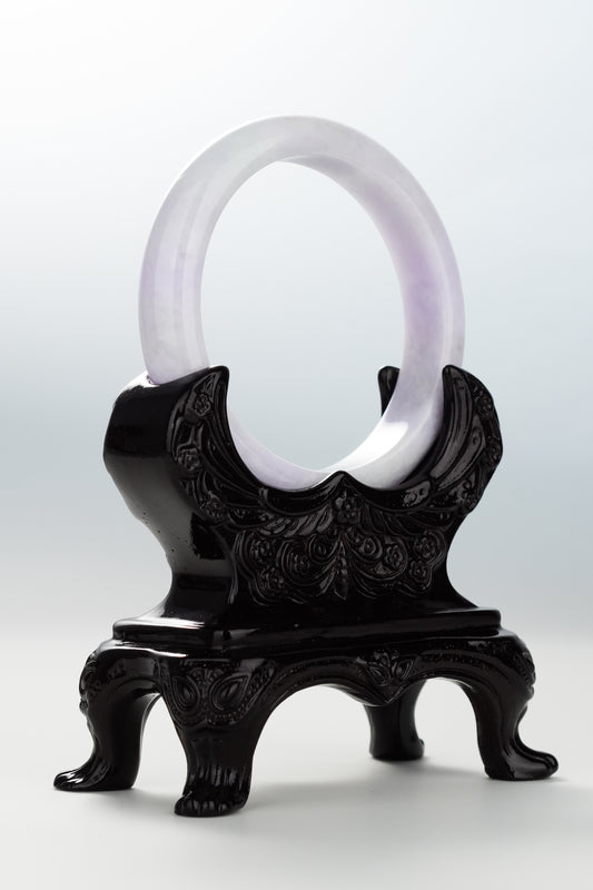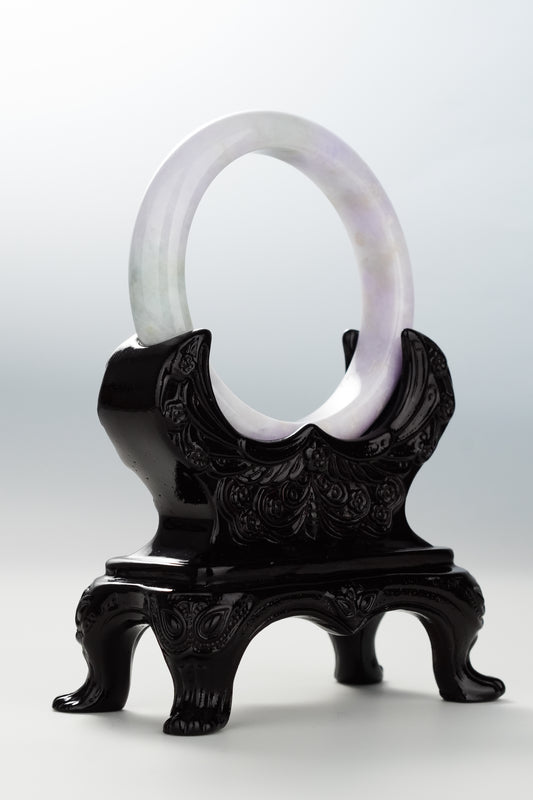 #0093 Spring Lavender Green White Jadeite Jade Bangle Size 55