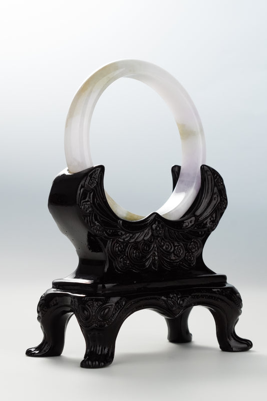 #0084 Sun Green Lavender White Jadeite Jade Bangle Size 55.1