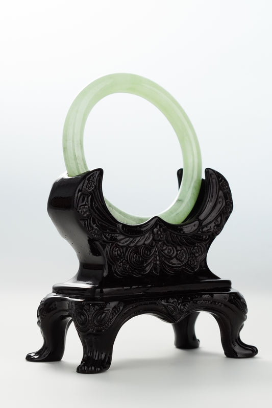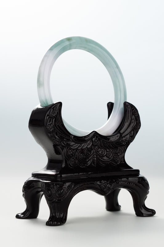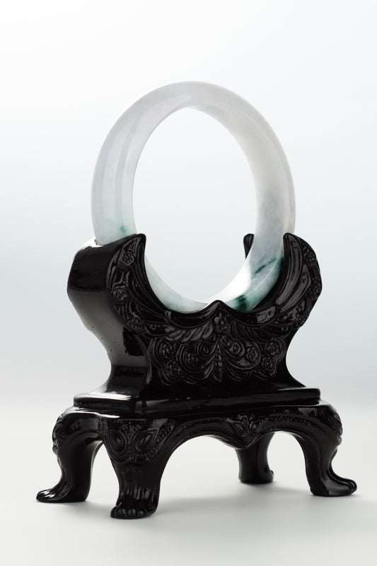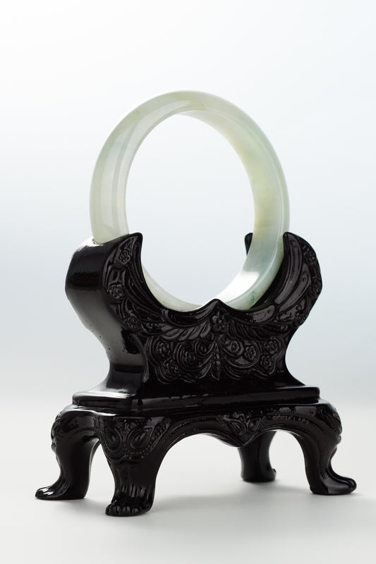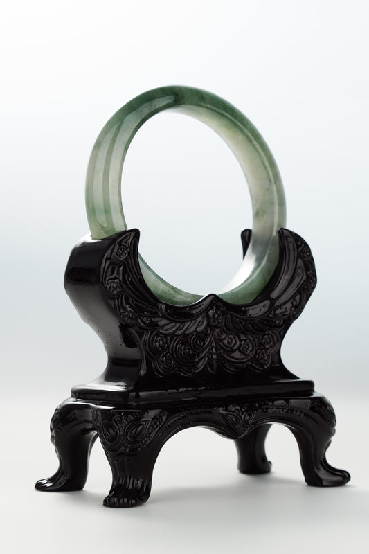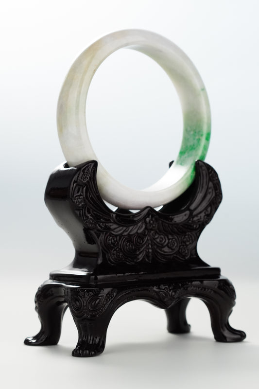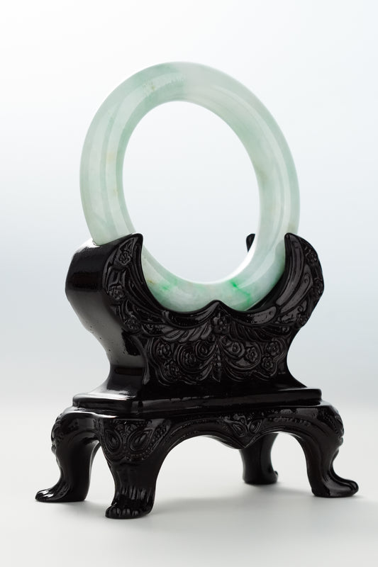 #0071 Icy Lotus Green Jadeite Jade Bangle Size 51.2 (fits up to 53)