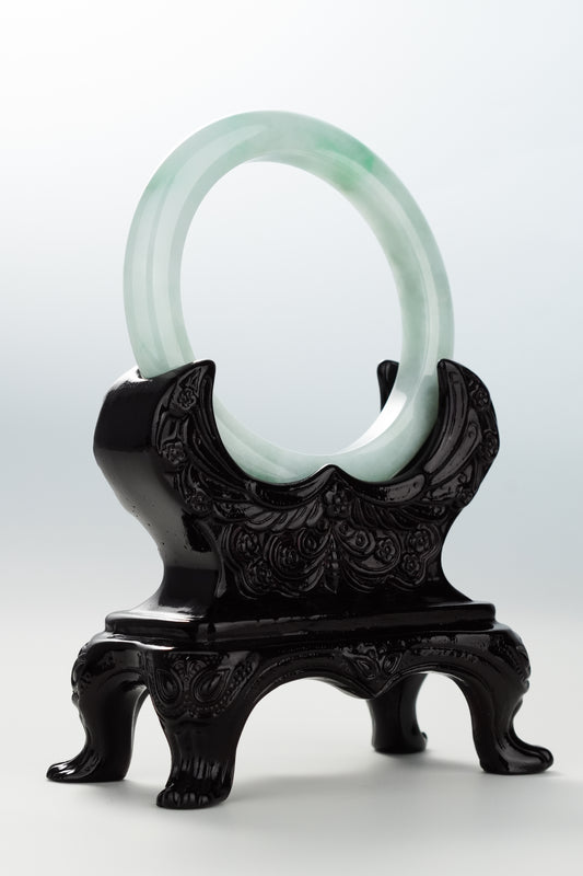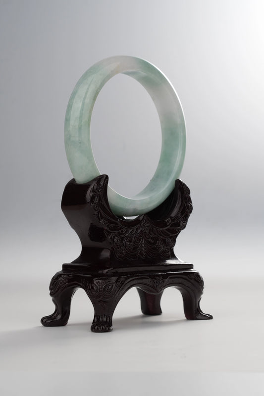 #0060 Icy Light Green Jadeite Jade Bangle Size 54 (fits up to 55.5)