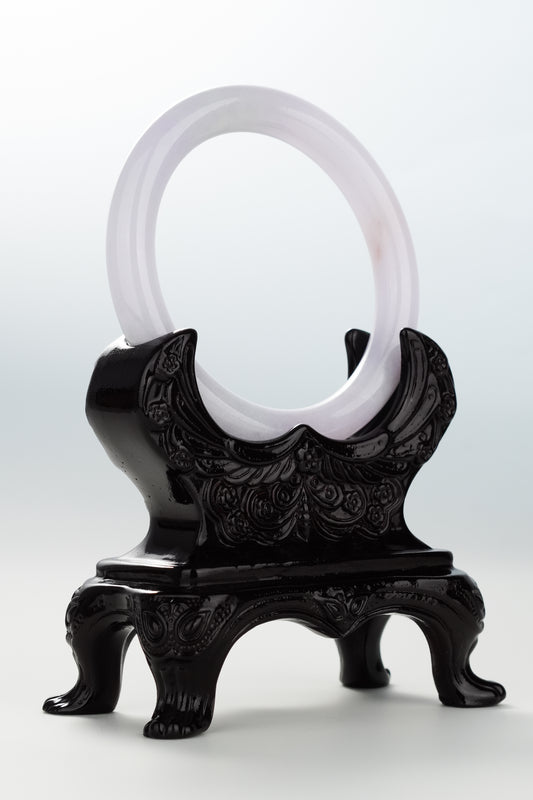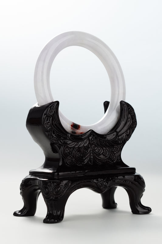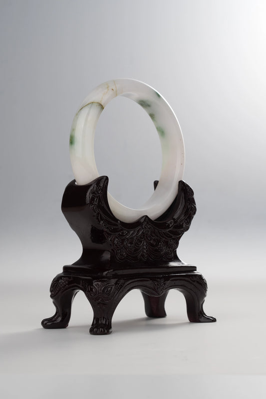 #0061 Icy Ink White Jadeite Jade Bangle Size 56 (fits up to 57.5)