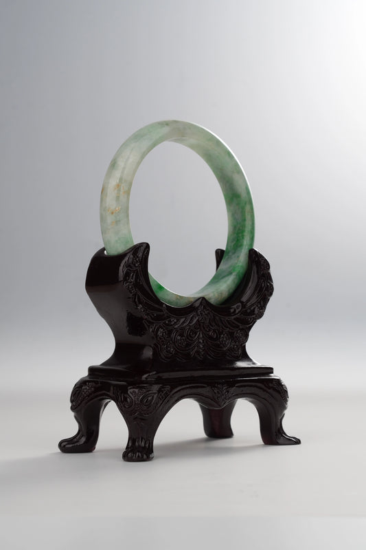 #0049 Green White Jadeite Jade Bangle Size 58.4