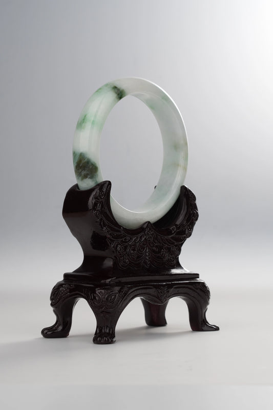 #0048 White Green Jadeite Jade Bangle Size 59.4