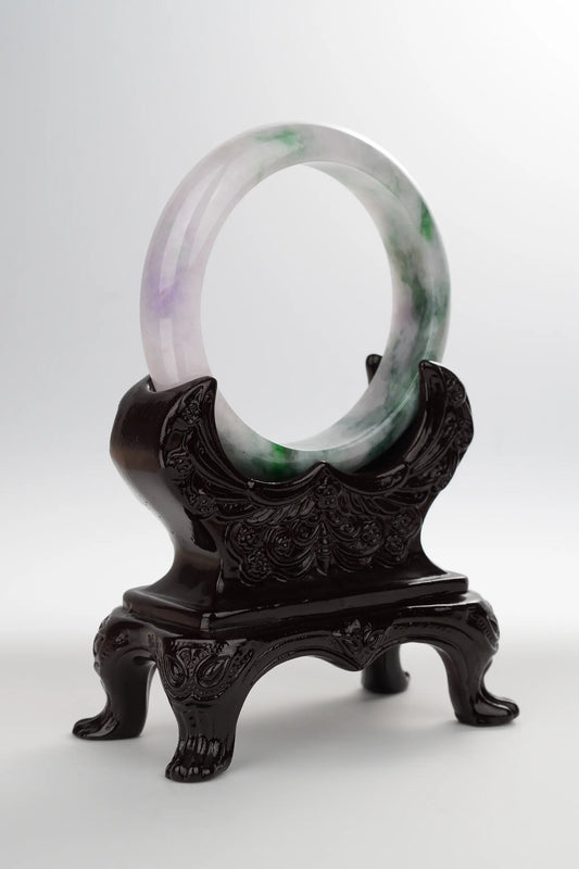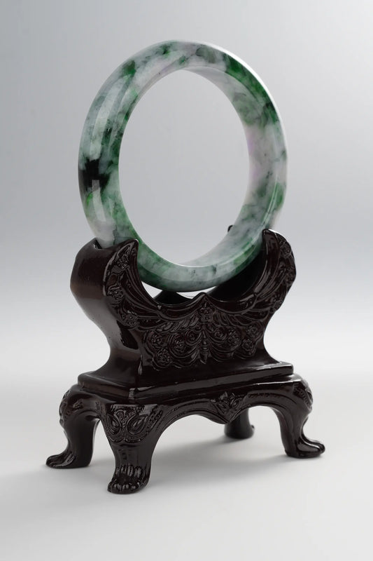 #0010 Mixed Green Lavender Jadeite Jade Bangle Size 62.5