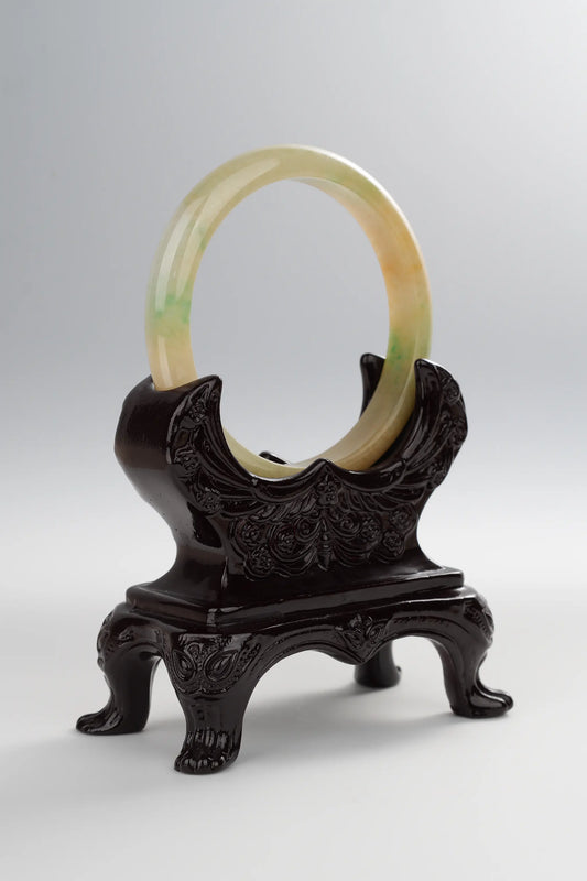 #0007 Mixed Rich Yellow Green Jadeite Jade Bangle Size 58.6