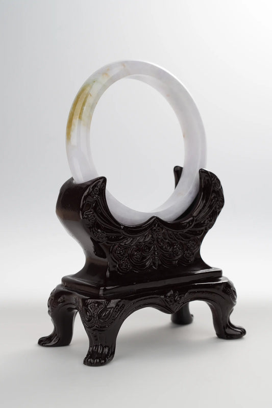 #0009 Icy Mixed Yellow White Jadeite Jade Bangle Size 57.1
