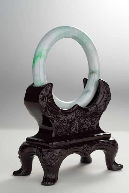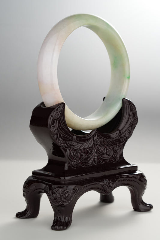 #0291 Green Flower Jade Bangle Size 57
