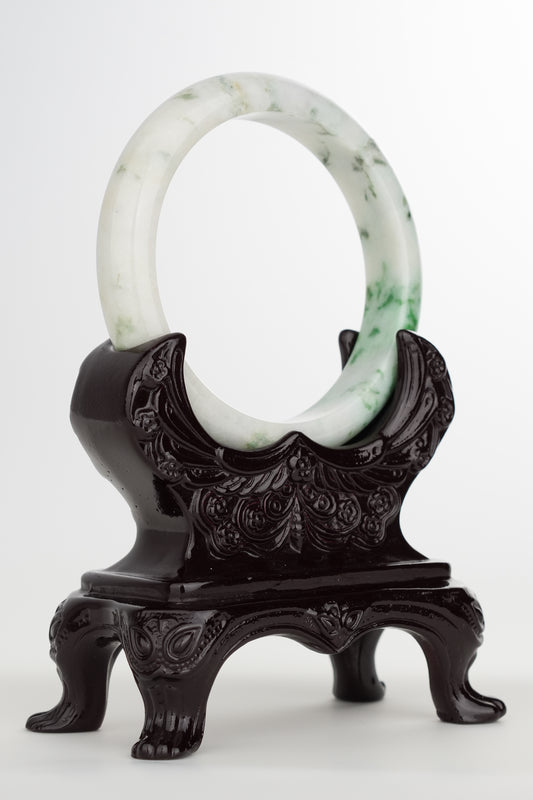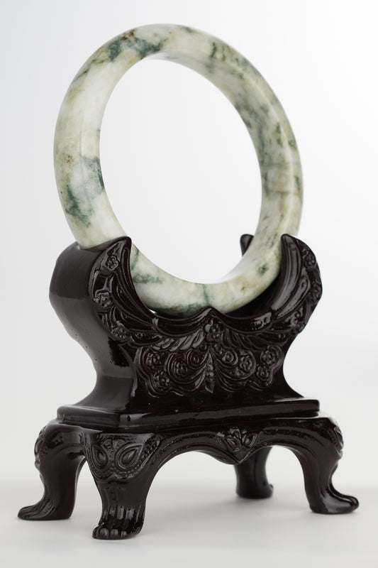 #0244 White Green Flower Jade Bangle Size 59.1