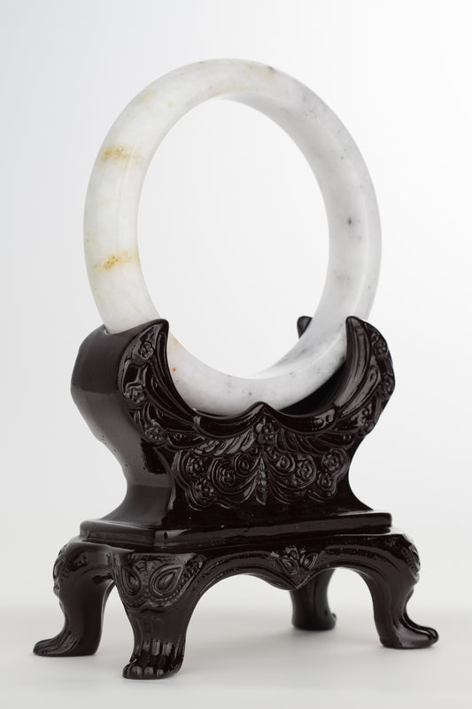 #0245 Ink Yellow Flower White Jade Bangle Size 63.1