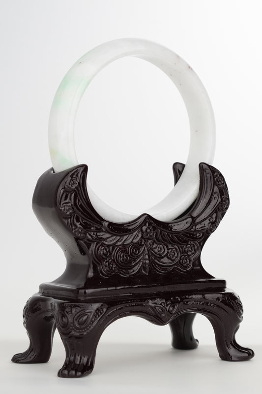 #0250 White Sun Green Jade Bangle Size 60.5