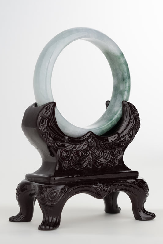 #0224 Bluish Green Flower Jade Bangle Size 55.7