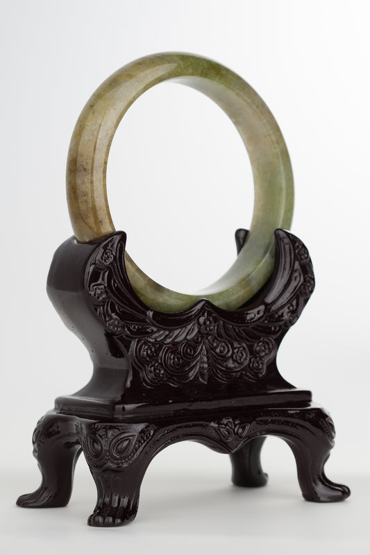 #0237 Yellowish Dark Green Jade Bangle Size 58.6