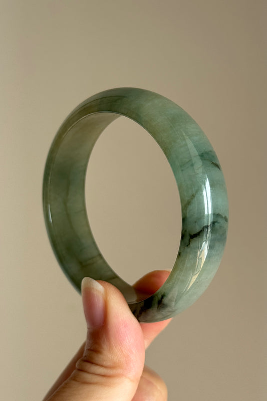 #0408 Bluish Green Flower Jade Bangle Size 57 (fits up to 58)