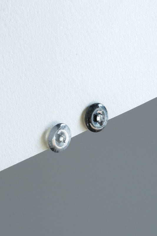 #E0301 "Bi" Highly Icy Ink Jadeite Jade 18K White Gold Earrings