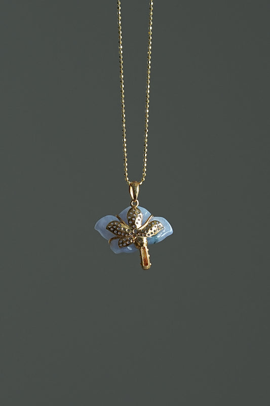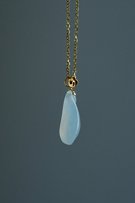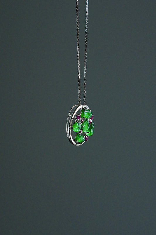#0442 "Magnolia" Icy Green Jadeite Jade 18K White Gold Pendant