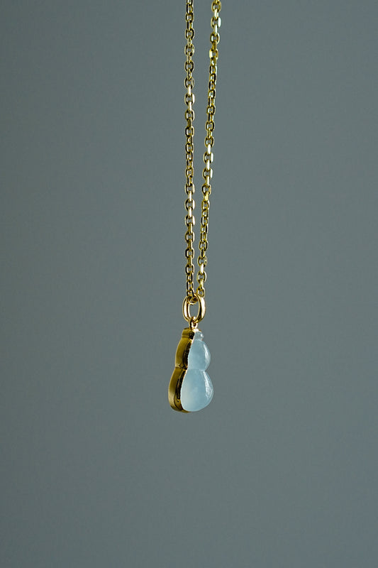 #0430 "Hulu" Highly Icy White Jadeite Jade 18K Yellow Gold Pendant