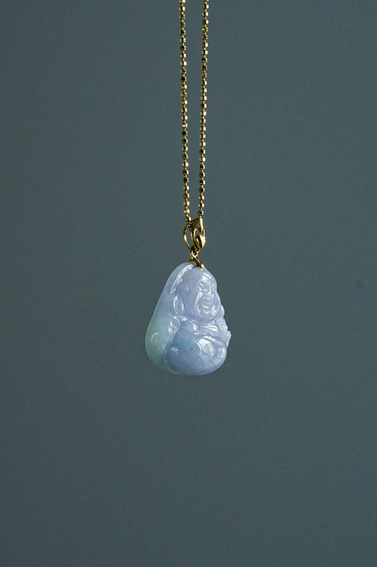#0438 "Buddha" Spring Lavender & Green Jadeite Jade 18K Yellow Gold Pendant