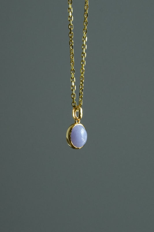 #0431 Lavender Jadeite Jade Cabochon 18K Yellow Gold Pendant