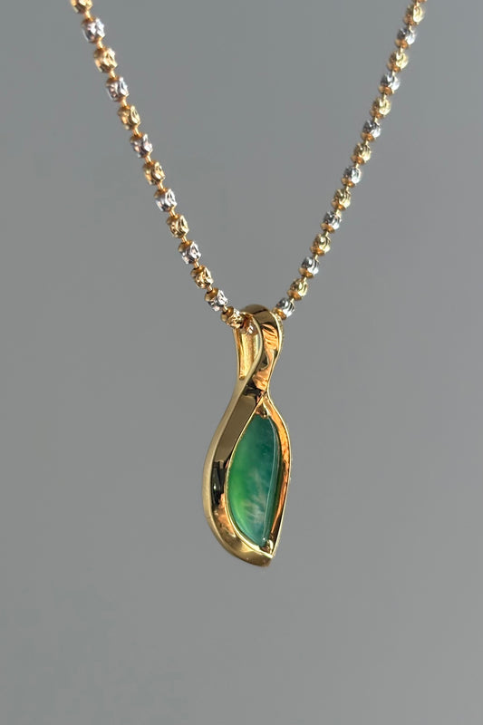 #P0426 "Leaf" Highly Icy Imperial Green Jadeite Jade 18K Yellow Gold Pendant
