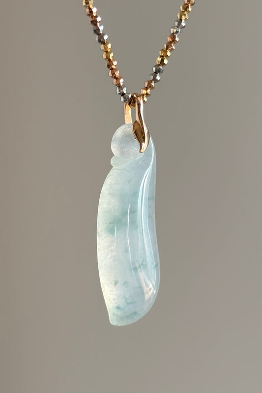 #P0446 "Fortune Melon" Highly Icy Blue Flower Jadeite Jade 18K Rose Gold Pendant