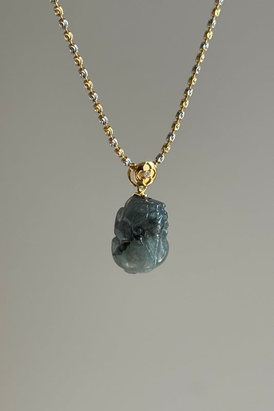 #P0523 "Pixiu" Icy Rich Blue Water Green Yellow Jadeite Jade 18K Yellow Gold Pendant