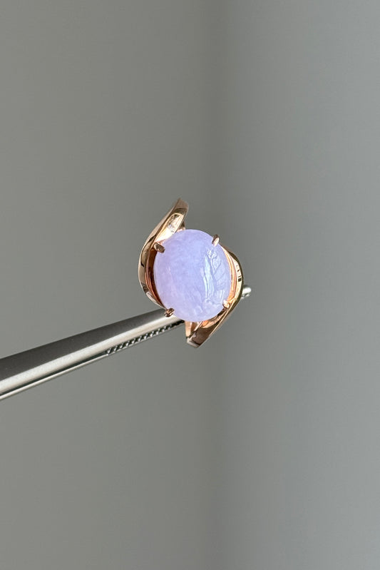 #R0621 Icy Lavender Jadeite Jade Cabochon 18K Rose Gold Ring Size 6.5