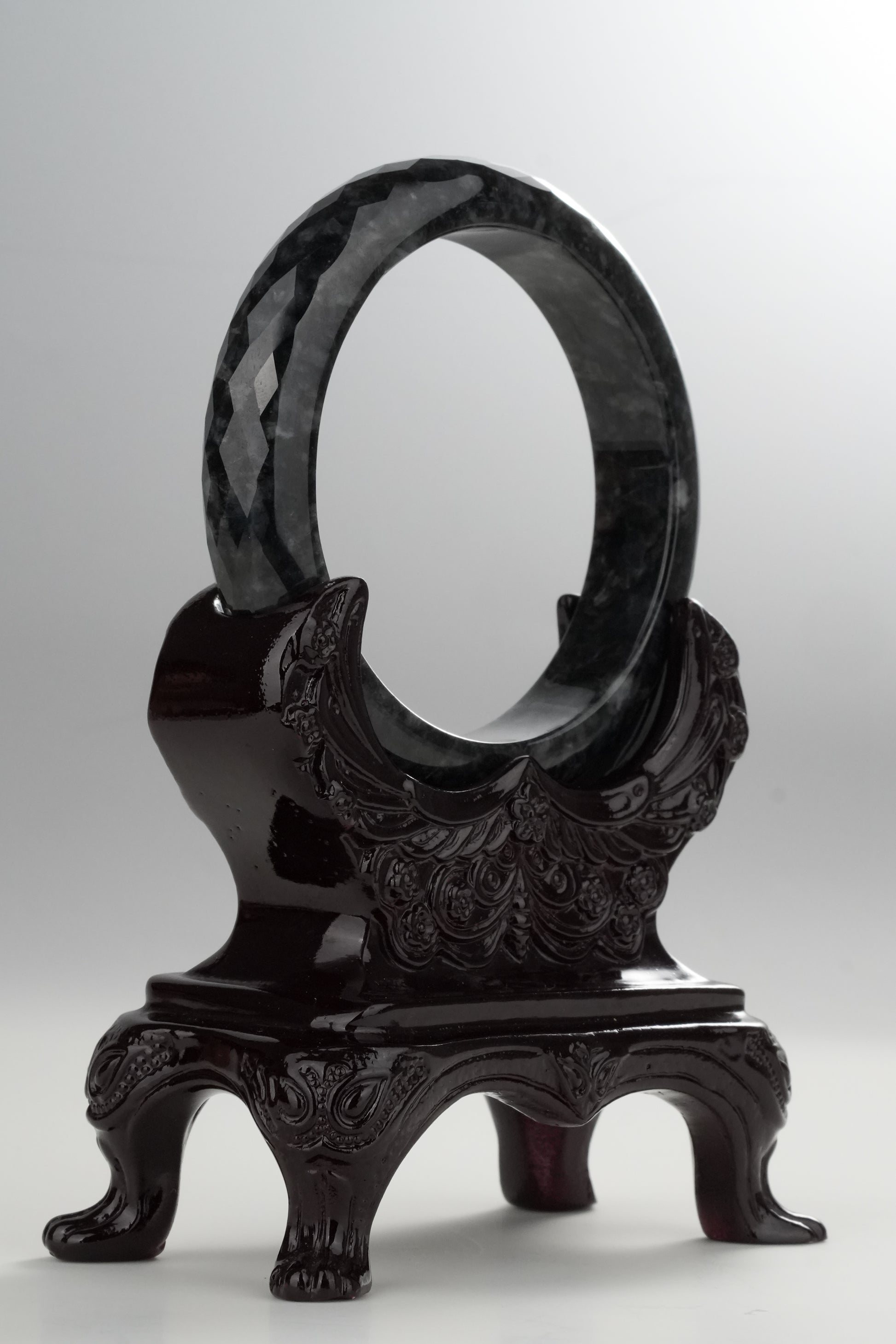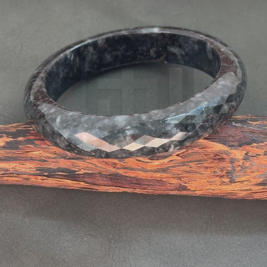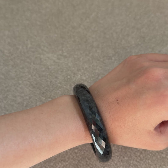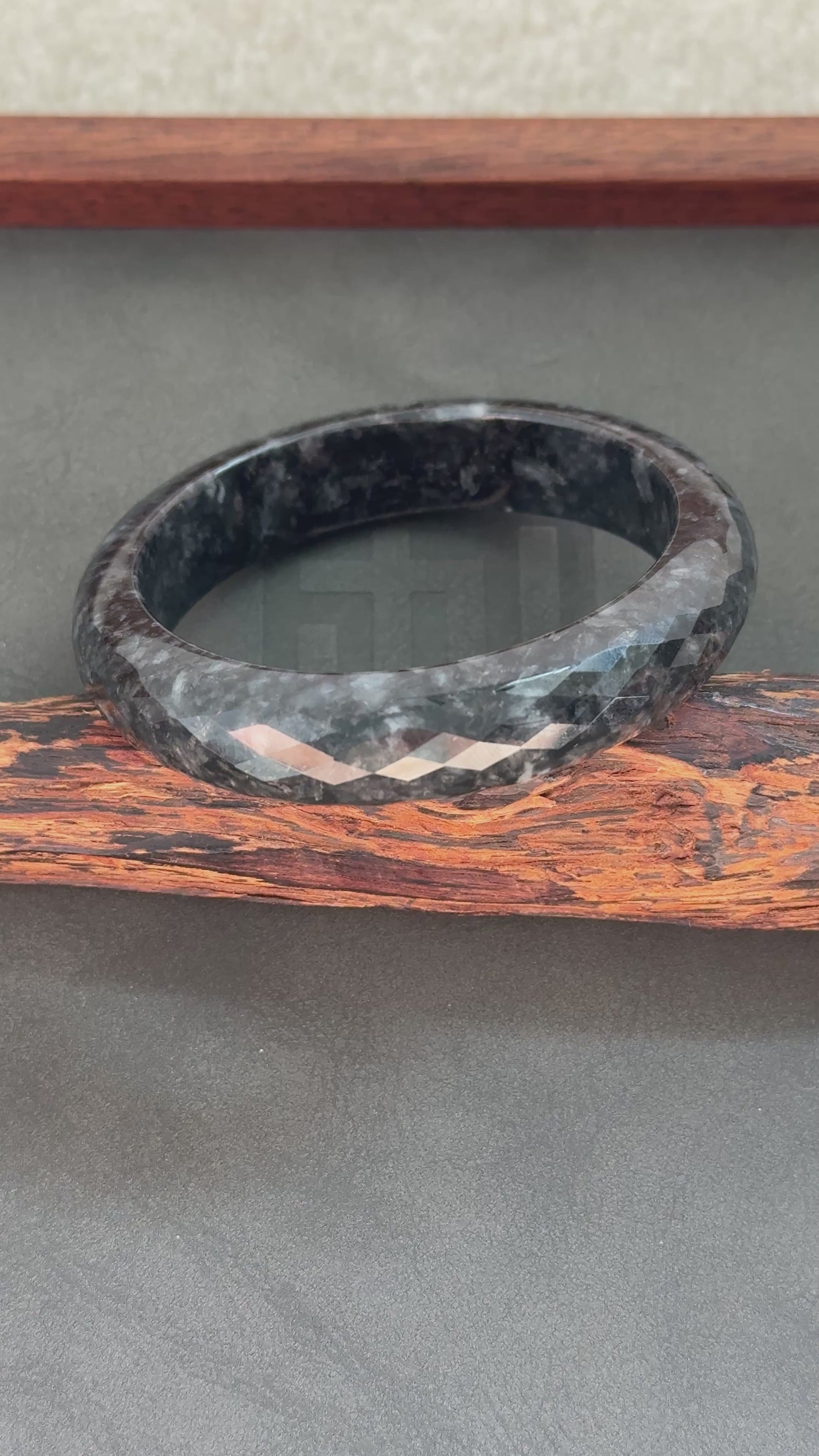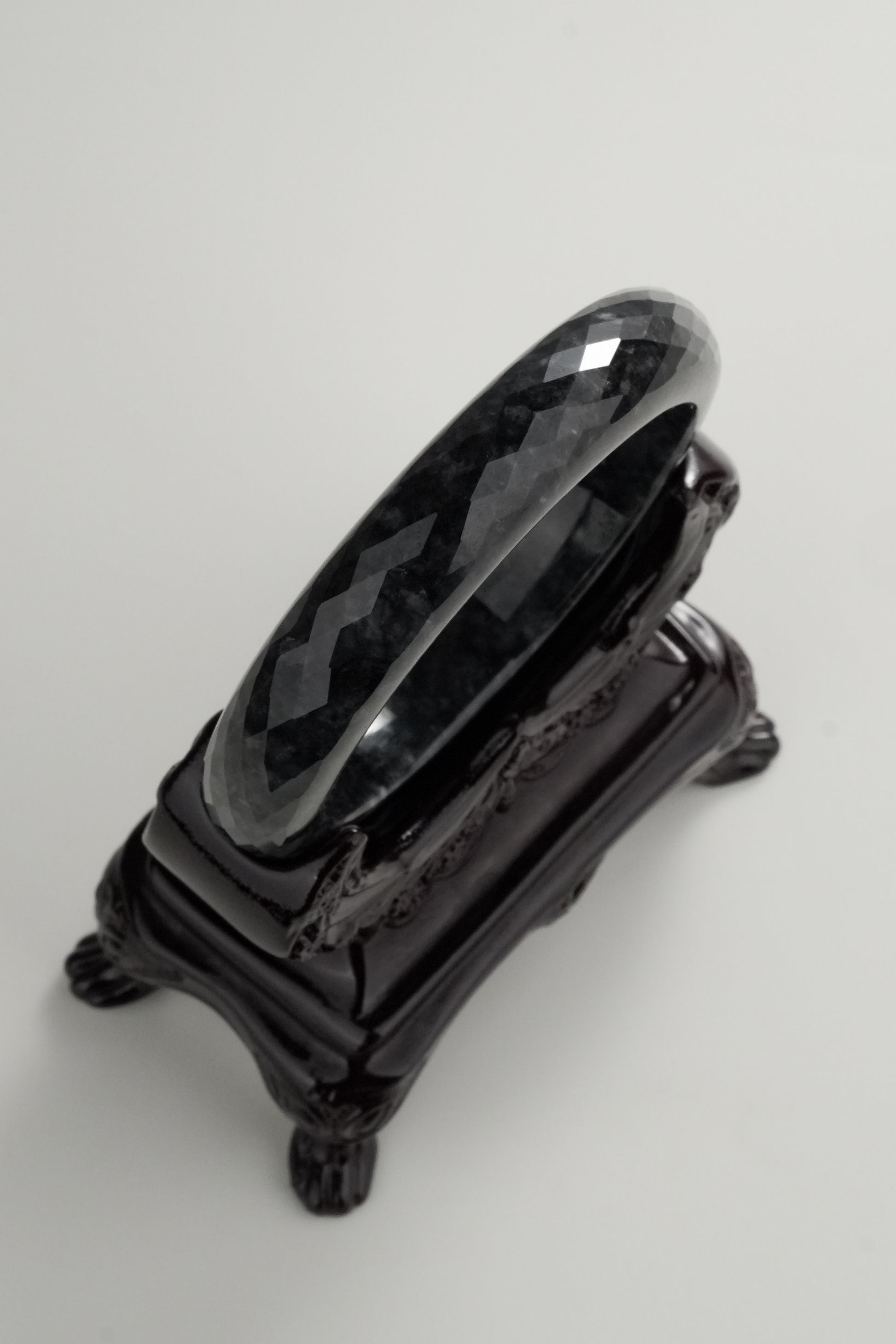 #0316 Diamond Cut Black Jade Bangle Size 57.6