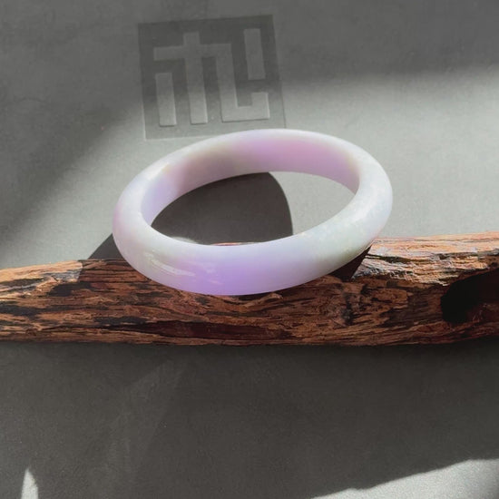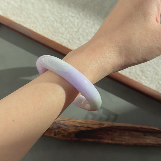 #0325 Vivid Spring Lavender Green with White Spot Jade Bangle Size 56.3