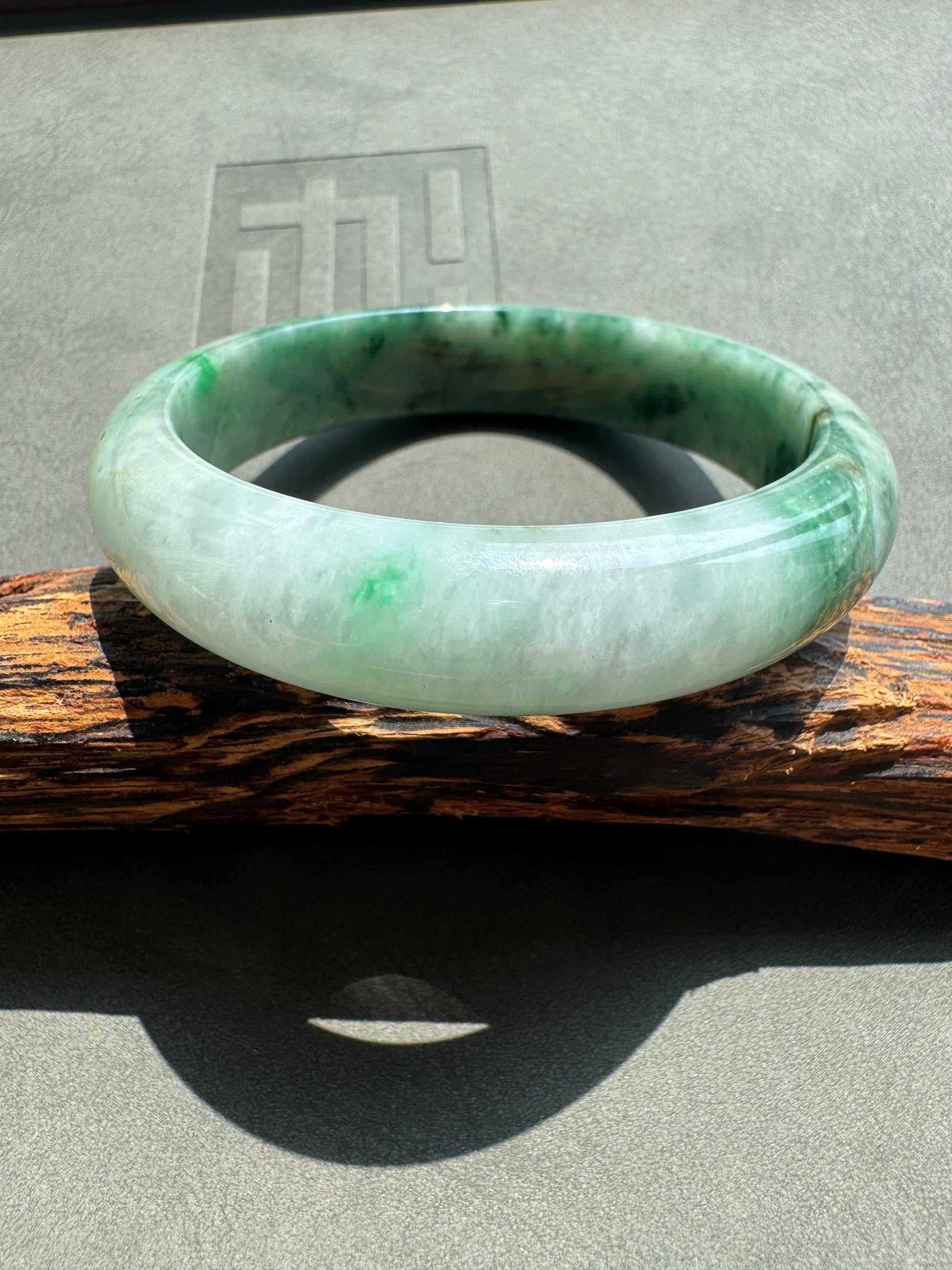 The jade bangle is more than a beautiful accessory—it symbolizes auspiciousness, good fortune, and harmony. Wearing it creates a subtle connection with nature, bringing tranquility and positive energy to life. In some cultures, it is believed to have a protective power, making it a precious talisman that blends spirituality with beauty.