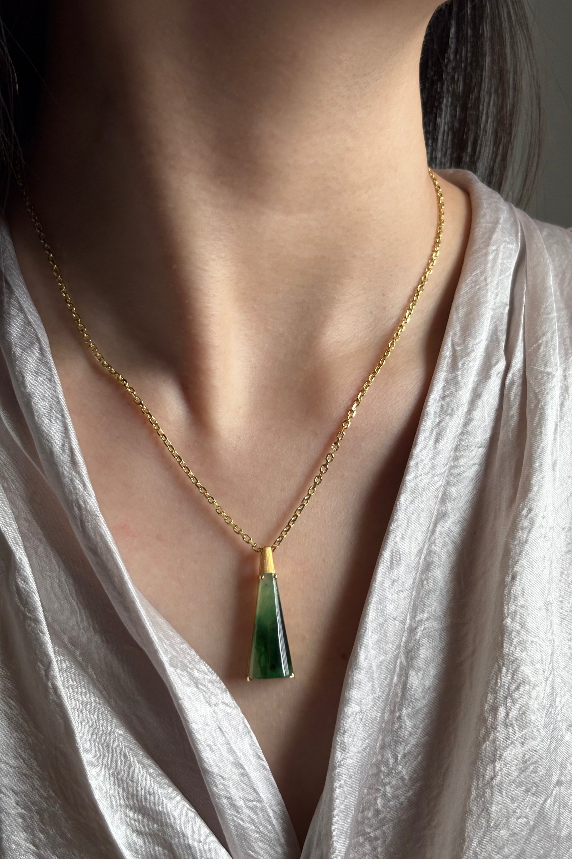 Inspired by the timeless symbolism of peace and protection, this Jadeite Peace (Wu Shi) Pendant Necklace embodies a wish for a calm and worry-free life. This piece is carefully crafted to preserve the jadeite’s natural patterns and tranquil beauty, shaped into the minimalist Peace Pendant form that highlights its pure elegance and inner harmony.