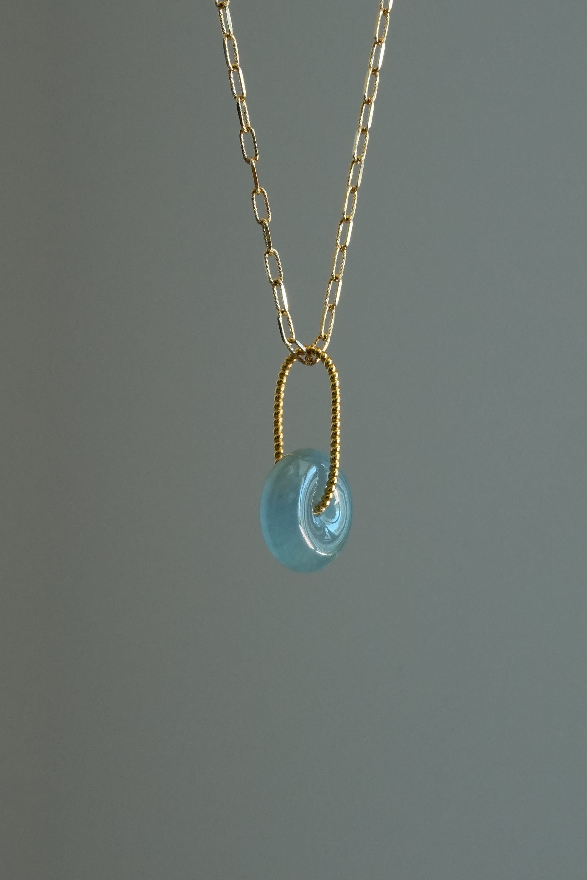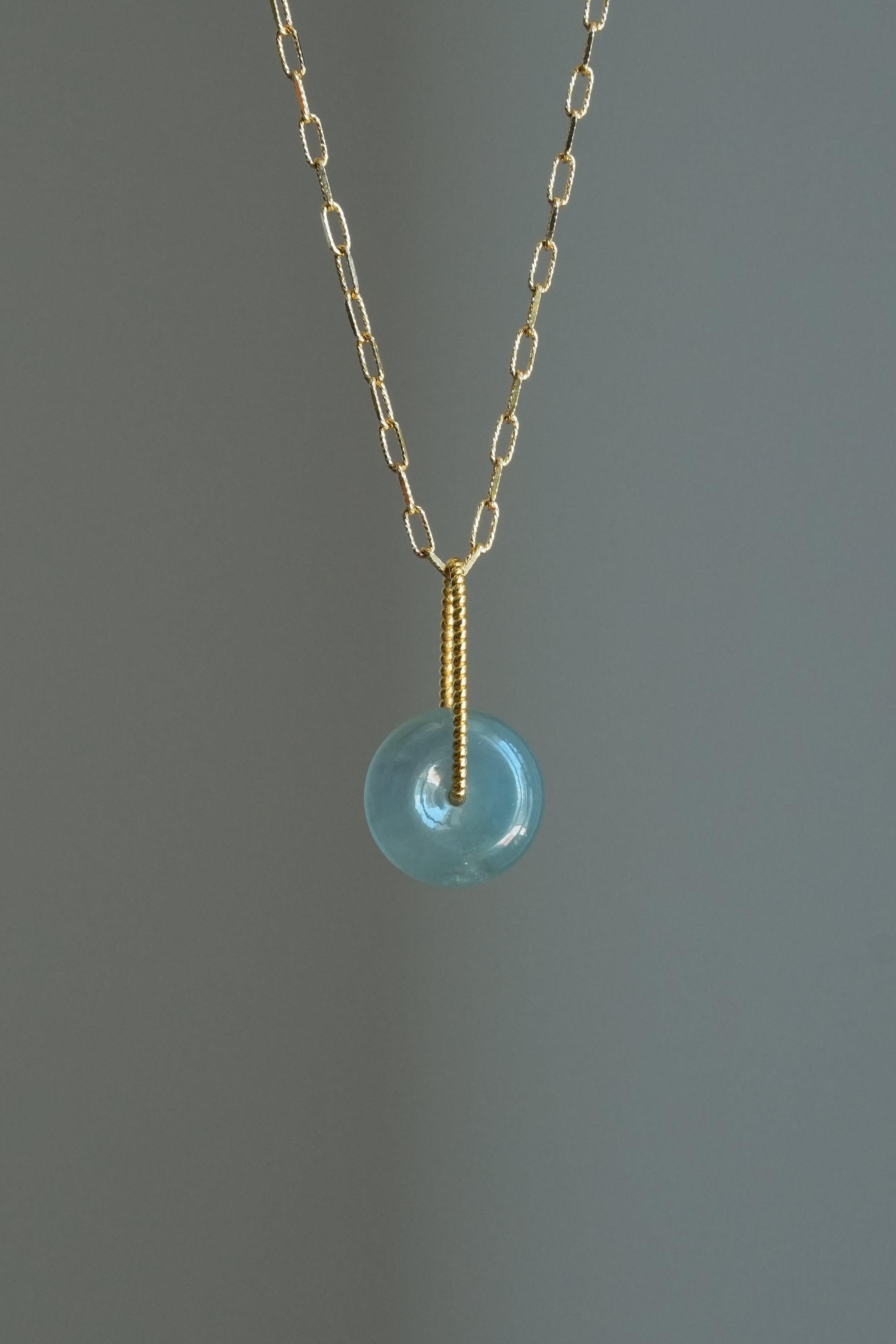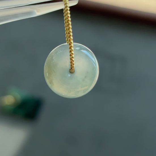 #0452 "Bi" Highly Icy Blue Lavender Jadeite Jade Donut 18K Yellow Gold Pendant