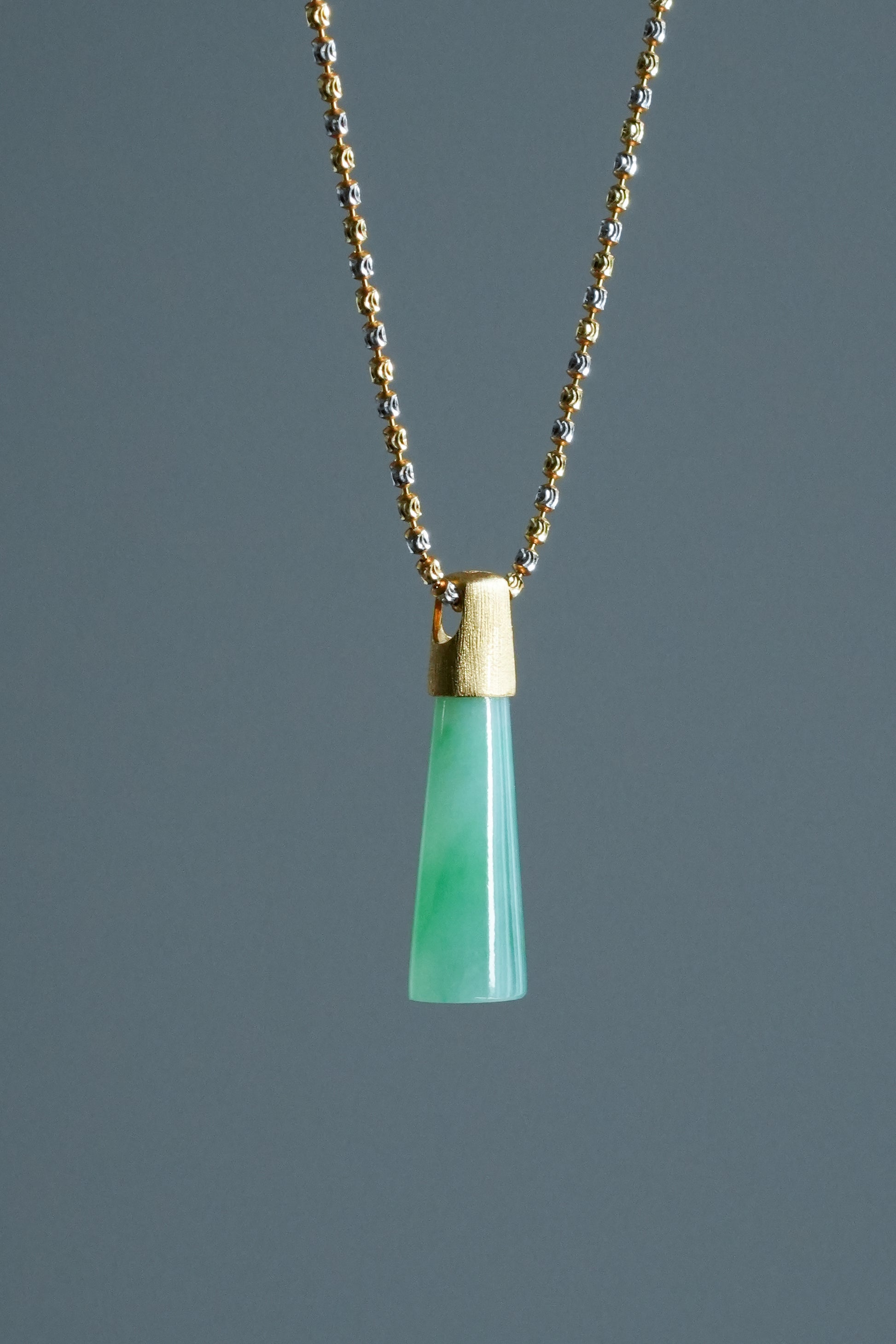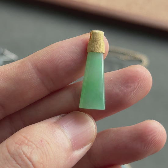 #0458 "Wushi/Peace" Icy Lotus Green Jadeite Jade 18K Yellow Gold Pendant