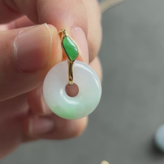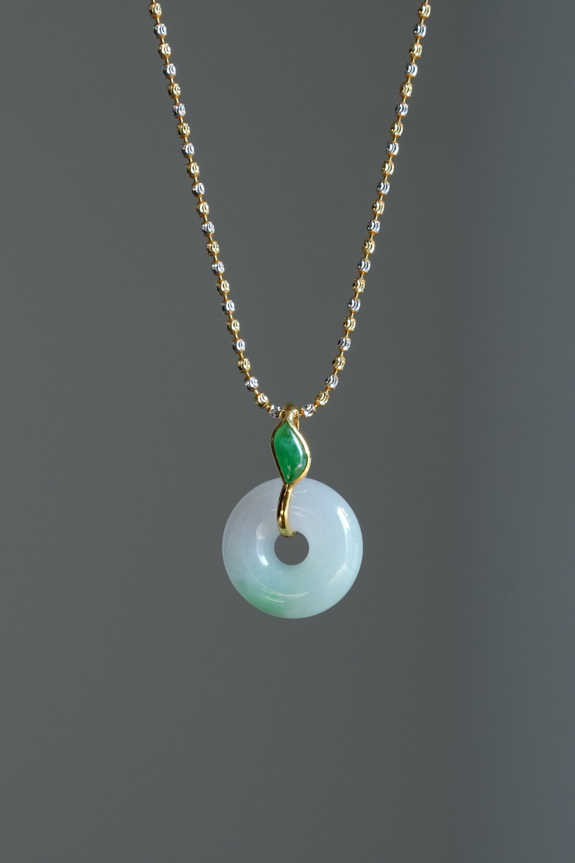 #0459 "Bi" Icy Sun Green Light Lavender Jadeite Jade Donut 18K Yellow Gold Pendant