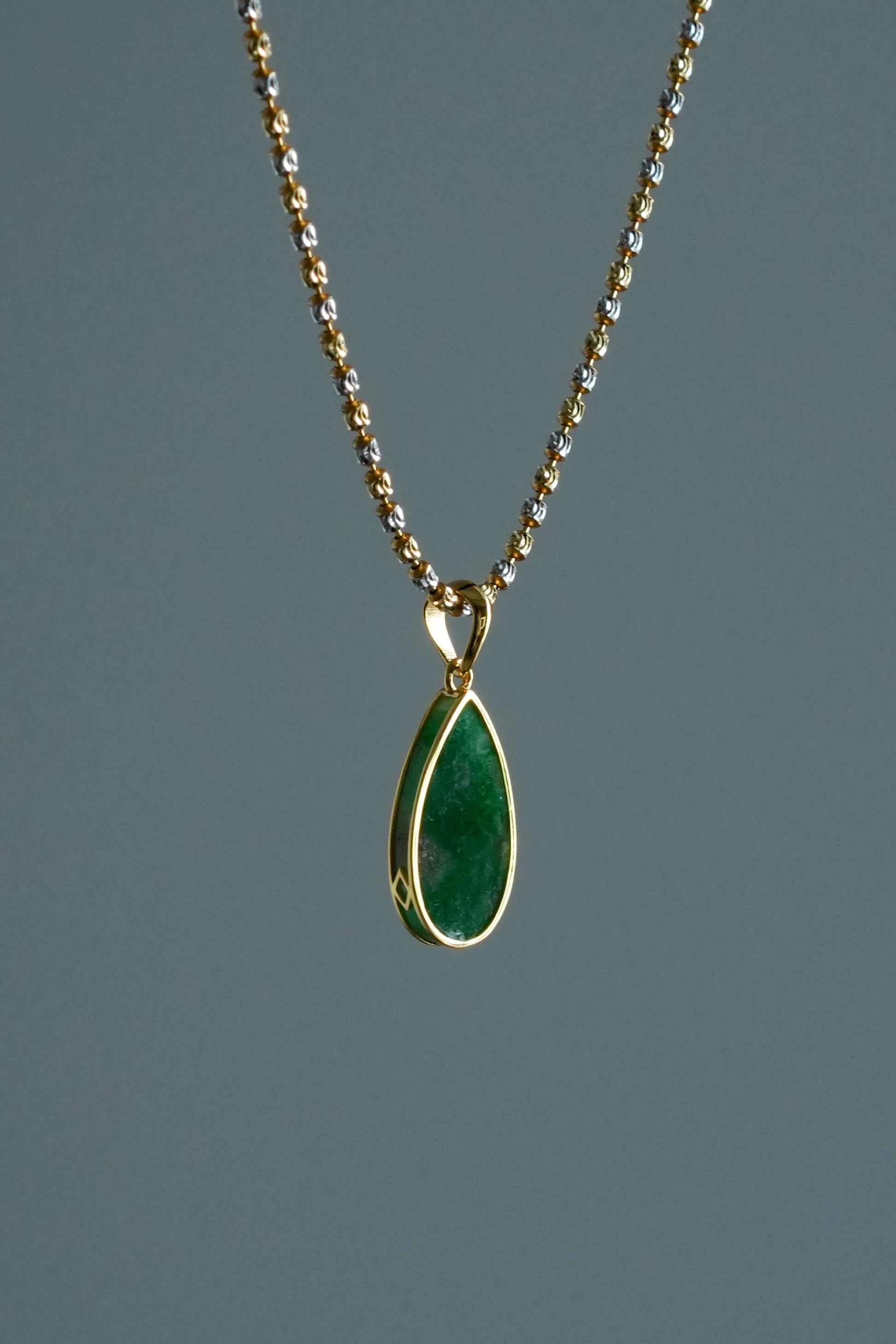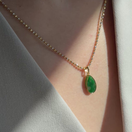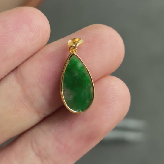#0466 "Water Drop" Icy Imperial Green Jadeite Jade 18K Yellow Gold Pendant