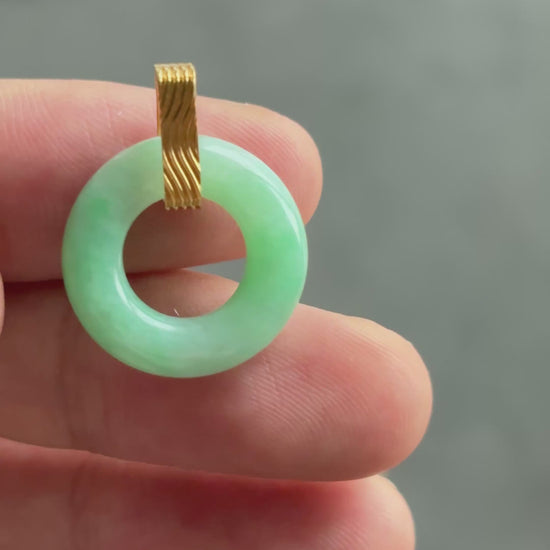 #0468 "Bi" Vivid Green Jadeite Jade 18K Yellow Gold Pendant