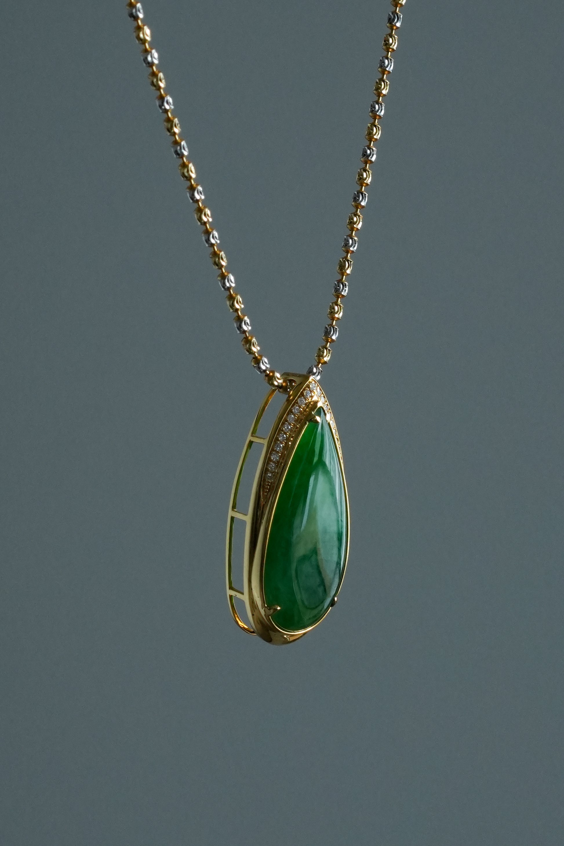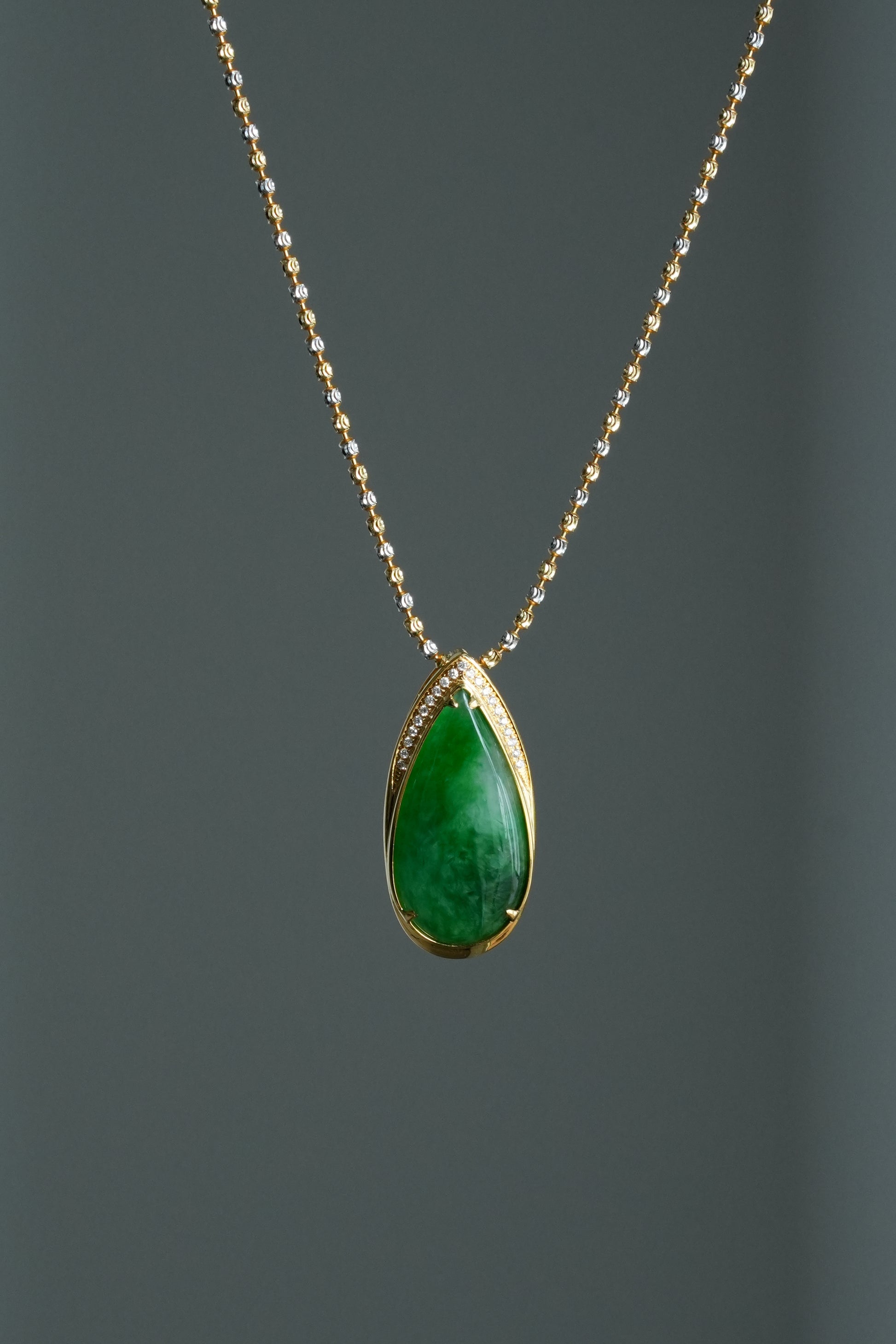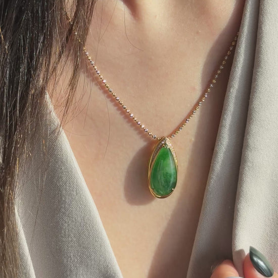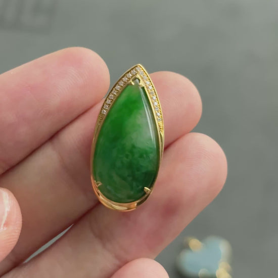 #0469 "Water Drop" Icy Imperial Green Jadeite Jade 18K Yellow Gold Pendant